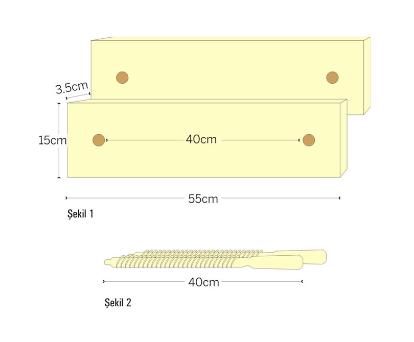 Ebatlar Şekil-1 de görüldüğü üzere sıkma takozlarında 55x15x3,5cm